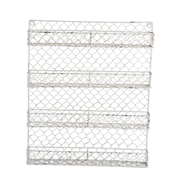 Antique White 4 Row Chicken Wire Spice Rack
