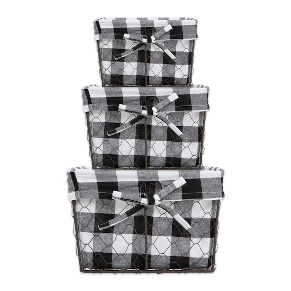 Assorted Vintage Grey Chicken Wire Black & White Check Liner Basket - Set of 3