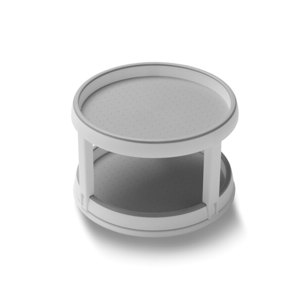 The madesmart Classic 10 Twin Turntable helps store and make items easily accessible with a spin. With double the storage" both the top and bottom turntables spin and feature a non-slip lining to keep items in their place. There is also a wide base to ensure stability. Great for putting on table-tops in fridges and in cabinets.