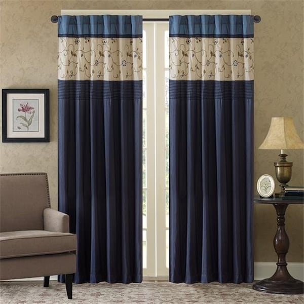 Madison Park MP40-4209 50 x 84 in. Serene Embroidered Window Panel - Navy