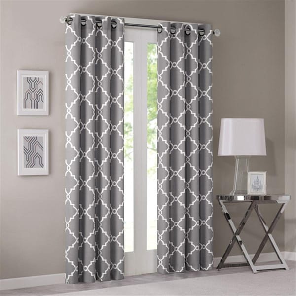 Saratoga Fretwork Print Window Curtain, Grey - 63 in.