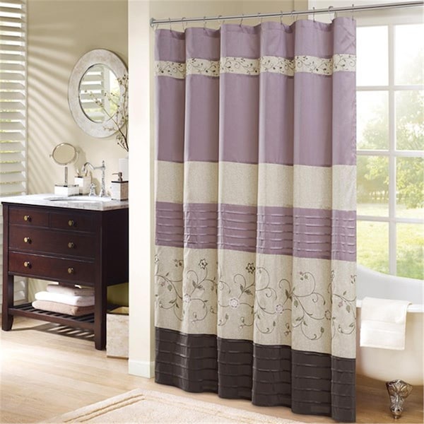 Serene Embroidered Shower Curtain - Purple