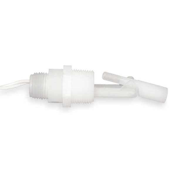Alternator Closed Liquid Level Switch, Switch Function Selectable, Side Mounting, Tank Connection Size 1/2 in x 3/4 in NPT, Max. Pressure 100 psi, VA Rating 30, Operating Temp. Range 221 Degrees F Max., Overall Length 2.25 in, Float Material Polypropylene, Float Length 2.06 in, Float Dia. 0.5 in, Stem Material Polypropylene, Stem Length 2.25 in, Height -, Width 0.6 in, Contact Form SPST, Max. Current 0.28 A, Max. Voltage 240 V, Body Material Polypropylene, Conduit Size 1/2 in