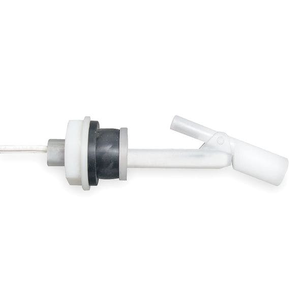 Alternator Closed Liquid Level Switch, Switch Function Selectable, Side Mounting, Tank Connection Size 5/8 in - 11 UNC, Max. Pressure 100 psi, VA Rating 30, Operating Temp. Range 221 Degrees F Max., Overall Length 4.04 in, Float Material Polypropylene, Float Length 1.75 in, Float Dia. 1.0 in, Stem Material Polypropylene, Stem Length 3.31 in, Height -, Width 0.6 in, Contact Form SPST, Max. Current 0.28 A, Max. Voltage 240 V, Body Material Polypropylene, Conduit Size 5/8 in 11