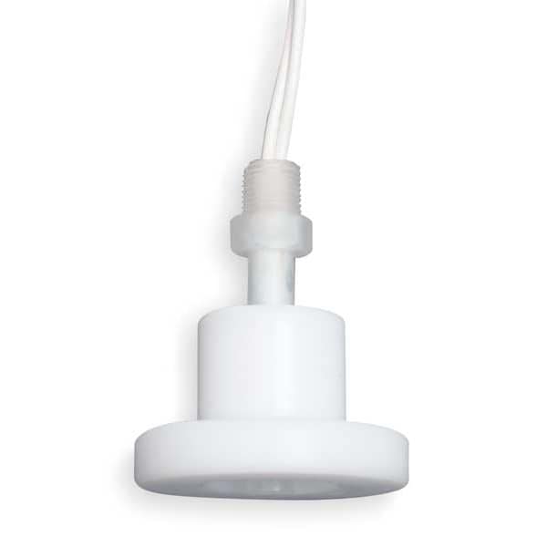 Closed Liquid Level Switch, Switch Function Open On Rise, Vertical Open Tank Mounting, Tank Connection Size 1/8 in NPT, Max. Pressure 25 psi, VA Rating 30, Operating Temp. Range 221 Degrees F Max, Overall Length 2.25 in, Float Material Kynar, Float Length 1.16 in, Float Dia. 1.88 in, Stem Material Kynar, Stem Length 1.63 in, Height 2.25 in, Contact Form SPST, Max. Current 0.28 A, Max. Voltage 240 V, Body Material Kynar, Conduit Size 1/8 in, Standards CE, NSF, UL Listed