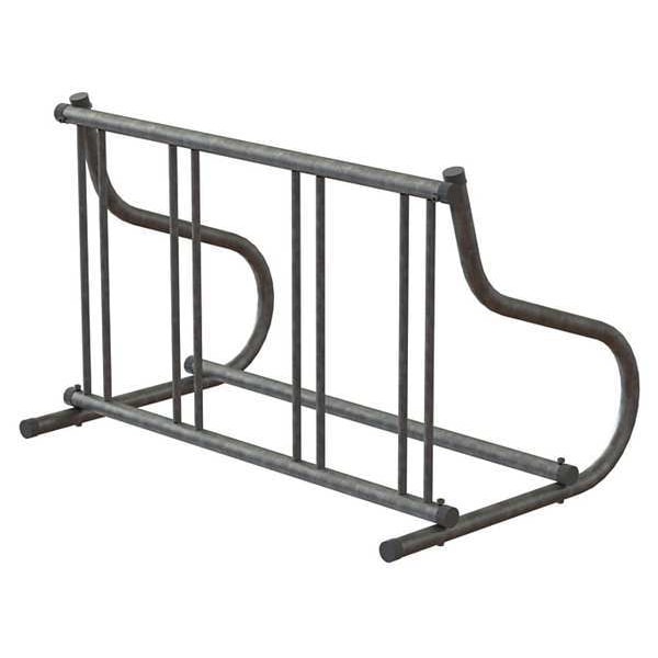 Bike Rack, Number of Bikes 4, Rack Style Grid, Finish Galvanized, Overall Height 30 3/4 in, Overall Length 48 in, Slot Width 3 in, Mounting Location Surface, Color Silver, Overall Width 32 in, Rack Material Steel