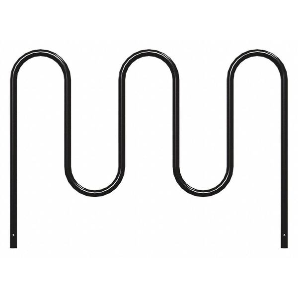 Bike Rack, Number of Bikes 7, Rack Style Wave, Finish Powder Coated, Overall Height 36 in, Overall Length 64 in, Slot Width 10 3/4 in, Mounting Location In-Ground, Color Black, Overall Width 64 in, Rack Material Steel