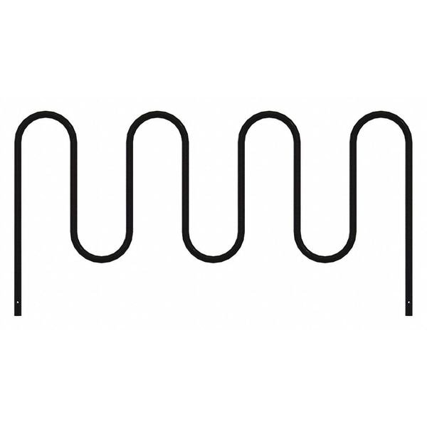 Bike Rack, Number of Bikes 9, Rack Style Wave, Finish Powder Coated, Overall Height 36 in, Overall Length 88 in, Slot Width 10 3/4 in, Mounting Location In-Ground, Color Black, Overall Width 89 in, Rack Material Steel