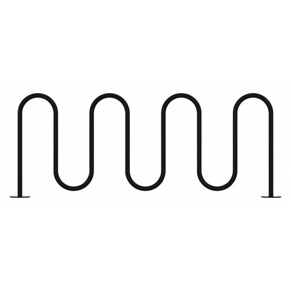 Bike Rack, Number of Bikes 9, Rack Style Wave, Finish Powder Coated, Overall Height 36 in, Overall Length 88 in, Slot Width 10 3/4 in, Mounting Location Surface, Color Black, Overall Width 89 in, Rack Material Steel