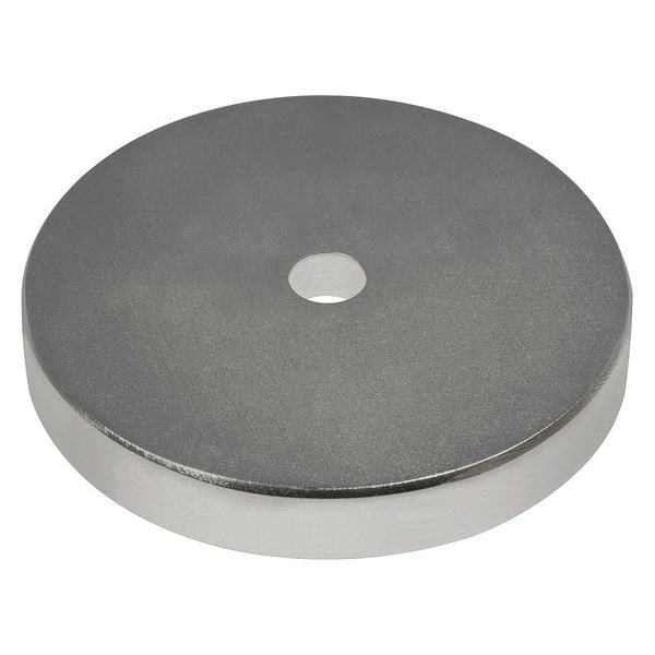 Rare Earth Magnet Material, Material Neodymium Iron Boron, Casing Material Sintered, Max. Pull 74.8 lb., Thickness 0.125 In., Diameter 1.50 In., Hole Dia. 0.125 In., Stability Temp. 180 Degrees F