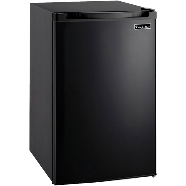 Wonderful food storage for a compact space! Ideal for offices, dorm rooms or any other efficient space, the black Magic Chef 4.4 cubic-ft. Refrigerator fits into smaller spaces with ease, making it convenient to store food and drink wherever is needed. An in-door gallon rack and can dispenser are ideal for beverage storage, and adjustable wire shelving allows you to adjust the space and size of your fridge.