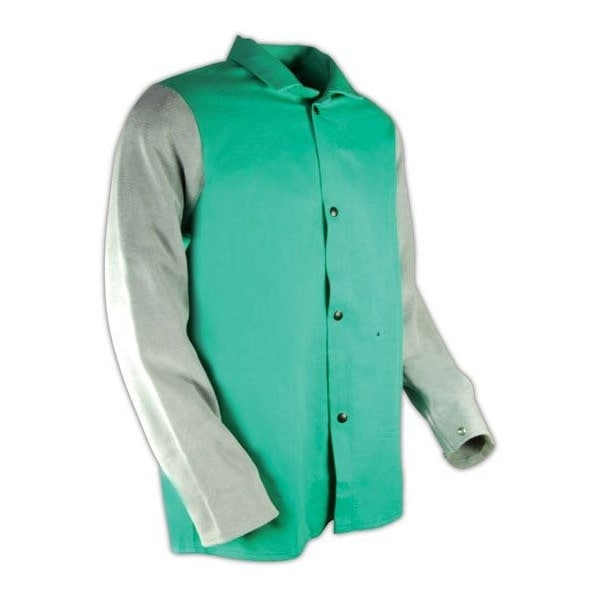 The Magid SparkGuard 1830LS Flame Resistant Jacket is excellent for use in welding, maintenance, metal fabrication and the steel industry SparkGuard Arc Flash shirts give a flame resistant finish even after 50 washings This electrical jacket is made with 100 cotton so it's lightweight and comfortable This 30 flameresistant jacket features leather reinforced nonreflective metal snap closures on placket and wrists, setin, snap closure sleeves, riveted left side breast pocket, lay down collar and grey leather sleeves Electric Arc Flash clothing meets ASTM D641399 safety standard