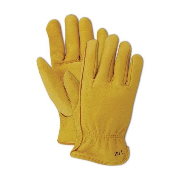 Leather Drivers Gloves, Slip On Cuff, Keystone Thumb Thumb, Gold, L 12 PK