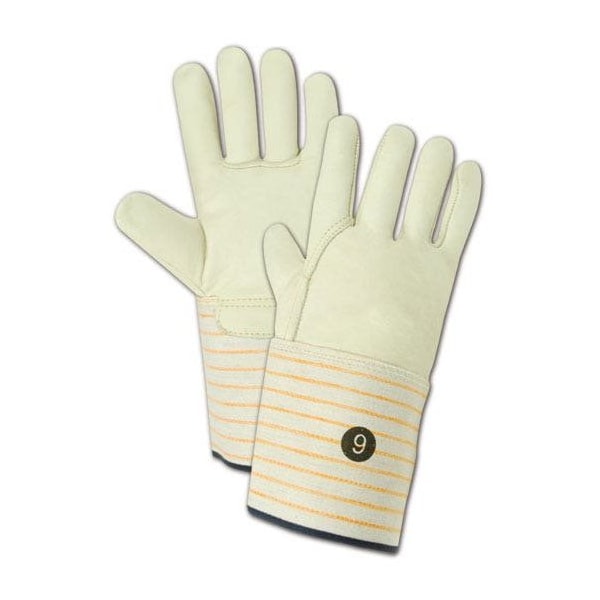 The Magid T6572G DuraMaster Grain Leather Work Gloves feature a full standardgrade grain leather palm, thumb and back This comfortable style features a gunn cut pattern with a wing thumb, palm lining, and a seamless index finger The T6572G style also offers the added protection of a gauntlet cuff that extends 45 past the wrist and protects the wearer's upper forearm The white gauntlet glove is also available in left hand and right handonly styles