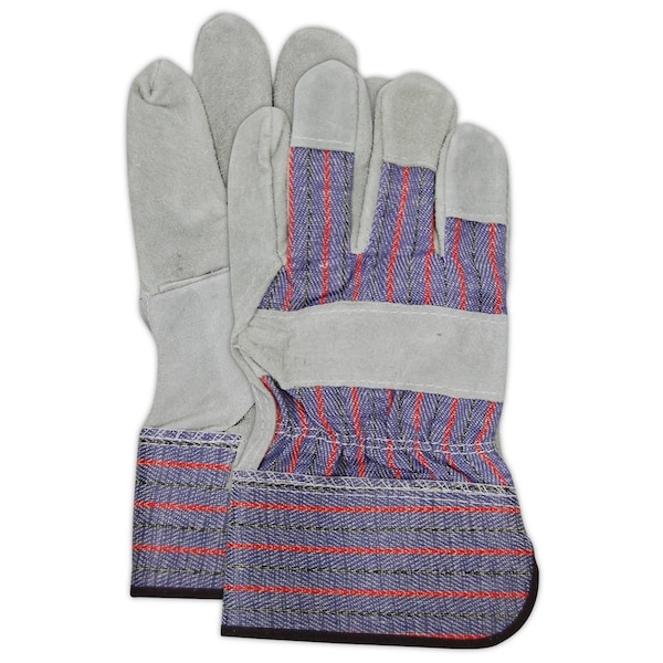 Leather Palm Gloves, Wing Thumb, Gray, L, 12 PK
