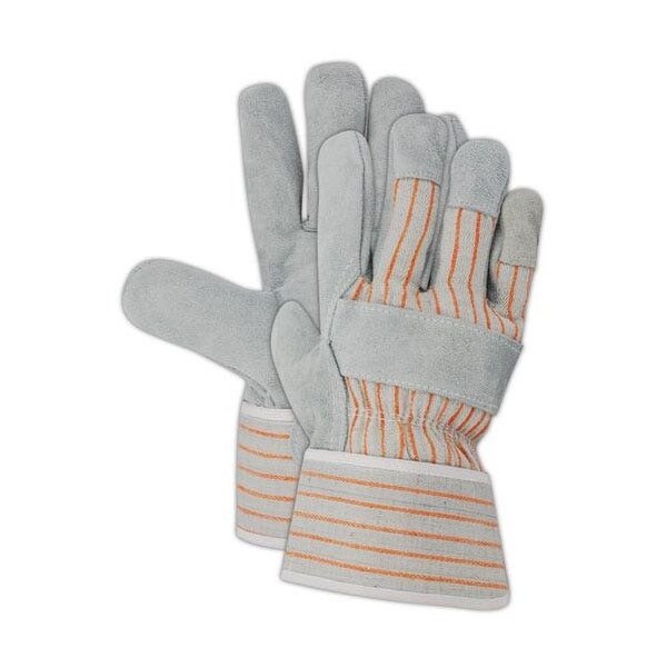 Leather Palm Gloves, Wing Thumb, Gray, Large, 12 PK