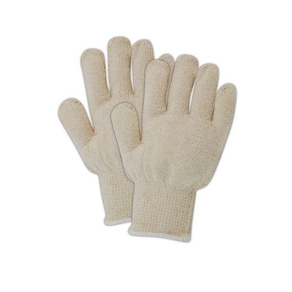 Machine Knit Gloves, Polyester/Cotton Blend, Natural, M, 12 PK