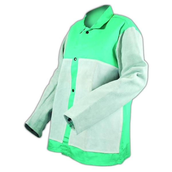 SparkGuard 1830LSFLP Green Flame Resistant Jacket with Leather Sleeves and Front Patches, L