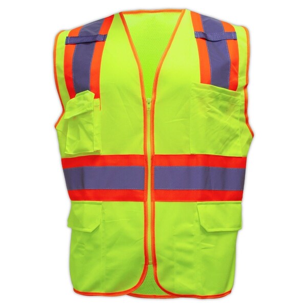 Two-Tone Hi-Vis Surveyors Vest S, M Class 2 , Zipper 6 Pockets