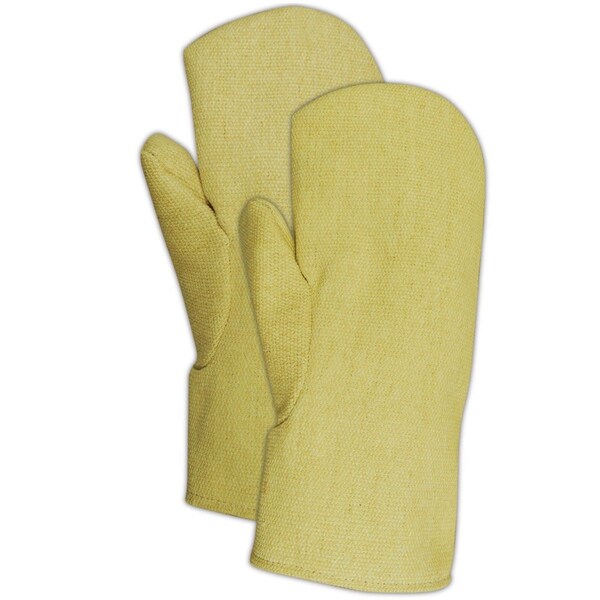 The Magid GP1414WL Kevlar mitt overs the protection you need in heavy heat applications Featuring 100 Kevlar material and a wool lining, this glove offers superior heat protection making it the ideal glove for applications such as glass and sheet metal manufacturing and handling This mitt is reversible making it last longer before having to replace it The sewn thumb allows for an easy and off fit that's comfortable too The mitt measures 14