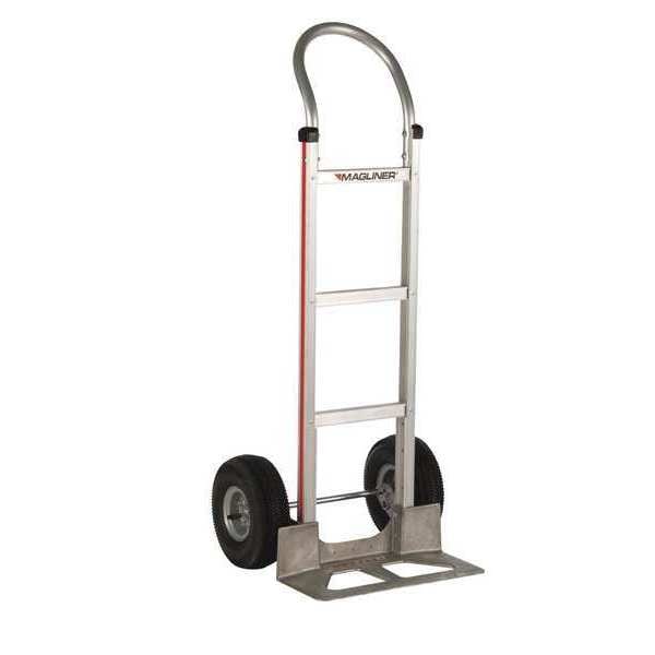 General Purpose Hand Truck, Load Capacity 500 lb, Overall Depth 25 in, Overall Height 48 in, Overall Width 20 3/4 in, Nose Plate Depth 7 1/2 in, Nose Plate Width 18 in, Nose Plate Type Open Straight, With Wheel Fenders, Frame Type Flat Back, Handle Type Continuous Frame Flow-Back, Axle-Mounted Wheel Dia. 10 in, Axle-Mounted Wheel Type Pneumatic, Includes Foot Assist Without Foot Assist, Includes Lever Pushoff Without Lever Pushoff, Includes Load Protector Without Load Protector