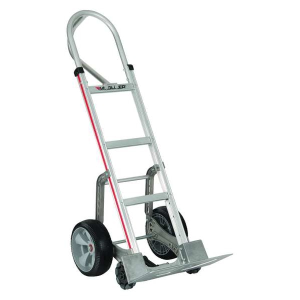 General Purpose Hand Truck, Load Capacity 500 lb, Overall Depth 25 1/2 in, Overall Height 52 in, Overall Width 20 1/2 in, Nose Plate Depth 7 1/2 in, Nose Plate Width 18 in, Nose Plate Type Open Straight, With Wheel Fenders, Frame Type Flat Back, Handle Type Continuous Frame Loop, Axle-Mounted Wheel Dia. 10 in, Axle-Mounted Wheel Type Flat-Free, Includes Foot Assist Without Foot Assist, Includes Lever Pushoff Without Lever Pushoff, Includes Load Protector Without Load Protector