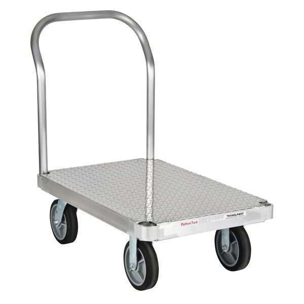Aluminum-Deck Platform Truck, Load Capacity 2,800 lb, Overall Height 39 in, Overall Length 72 in, Overall Width 36 in, Deck Construction Solid, Deck Material Aluminum, Deck Height 12 1/2 in, Deck Length 72 in, Deck Width 36 in, Deck Surface Ribbed, Frame Material Aluminum, Handle Type Removable Raised, Side Panel Type No Side Panels, Number of Platforms 1