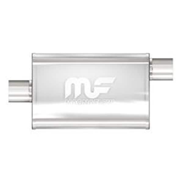Features Performance Mufflers Specifications Finish Natural Muffler Material Stainless Steel Case Shape Oval Inlet Diameter 3 in Inlet Location Center Outlet Diameter 3 in Outlet Location Offset Internal Construction Perforated stainless tube with packing Size 4 x 9 ft