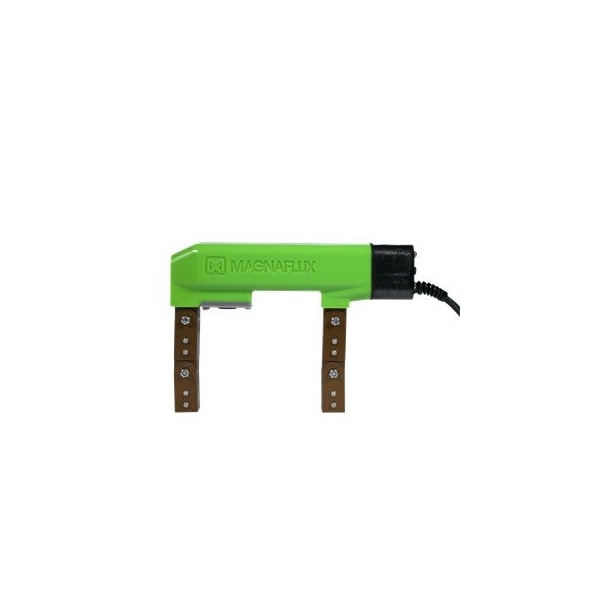 The Y-7 is a durable, high-strength AC/DC magnetic yoke designed to detect surface and sub-surface indications in the most rugged applications. Featuring sealed chemical-resistant construction, articulating legs to contour to any part shape and robust strain-relieved twelve-foot cord for field use, the Y-7 is ideal for inspection of welds and other remote testing. Solid-state controls allow the operator to use AC magnetic fields for surface indications or DC magnetic fields for sub-surface indications to meet all inspection needs. The Y-7 is also available in the Y-7 MV Kit which comes with a Y-7 yoke, #1 Gray and #8A Red magnetic powders, a paint marker and hand cleaner towels in a convenient carrying case.