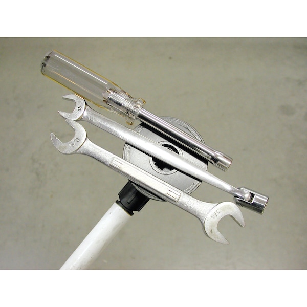 Attach an acme-threaded standard broom handle to this pre-treaded magnetic base. Use the wing nut to adjust the handle angle to desired position. Reach tools, nuts, bolts and other ferrous metal items with ease. More About Ceramic Magnets: Our hard ceramic ferrite magnets are composed of iron oxide and barium or strontium carbonate. Ceramic magnets exhibit relatively good holding strength for their price, making them a popular choice for many consumer, commercial and technical applications.