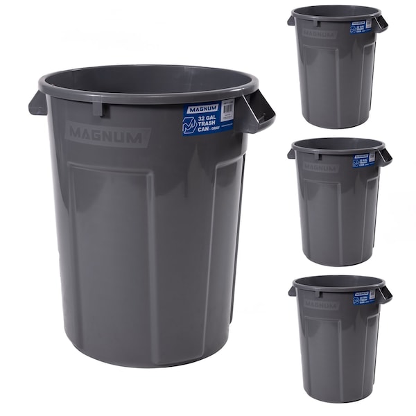 32 Gallon Trash Can, Construction Grade, Heavy Duty Plastic (4 Pack)