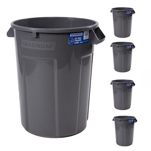 32 Gallon Trash Can, Construction Grade, Heavy Duty Plastic (5 Pack)