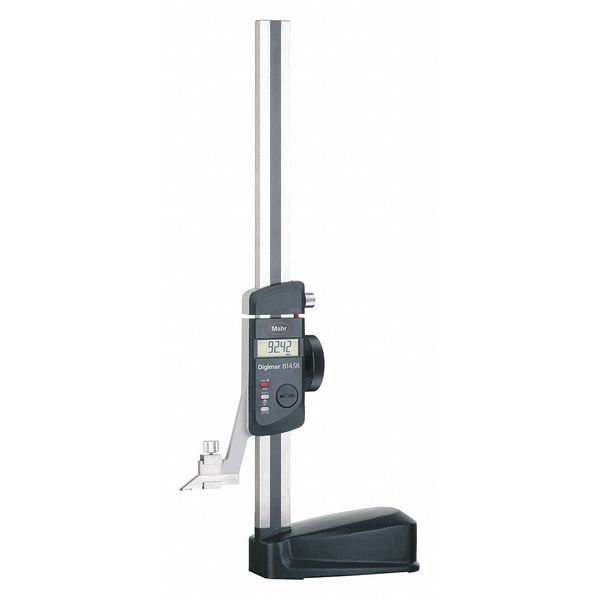 Item Digital Height Gauge, Counter Type Electronic Digital, Mechanism Feed Wheel, Construction Steel, Display LCD, Resolution 0.0005 in; 0.01 mm, Range 0 in to 14 in/0 to 350 mm, Accuracy +/-0.0016 in, Base Cast Iron, Battery CR2032, Features Data Output, Digimar 814 SR, Lock/Unlock, Includes Interchangeable Carbide Tip Scriber