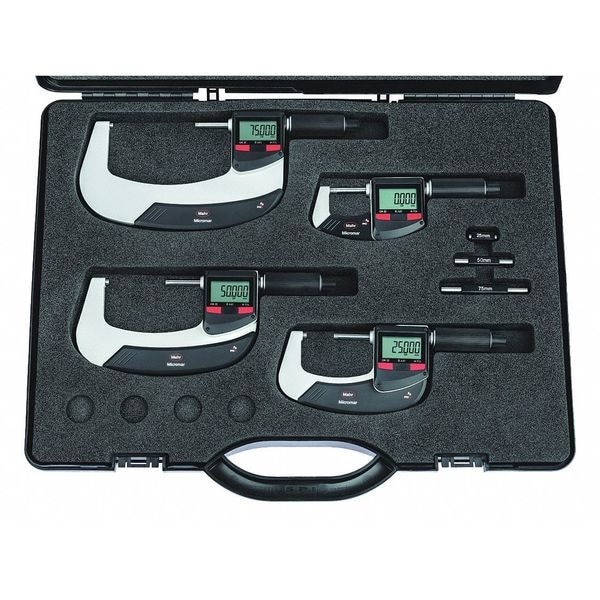 IP65 Digital Outside Micrometer, Range 0 to 100 mm, 0 in to 4 in, Resolution 0.00005 in/0.001 mm, Accuracy +/-0.002 mm, IP Rating IP65, SPC Output Yes, Data Output Type Wireless, Coolant Resistant Yes, Dimension Type Inch/Metric, Included Certification Certificate of Conformance, Operation Type Digital, Rotating Spindle (Yes/No) Yes, Spindle Shape Flat, Thimble Type Ratchet, Case Included Yes, Functions ABS, Bi Directional Interface, Data, Hold, Origin, Reset, Tol