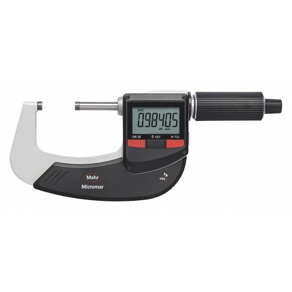 IP65 Digital Outside Micrometer, Range 1 in to 2 in, 25 to 50 mm, Resolution 0.00005 in/0.001 mm, Accuracy +/- 0.002 mm, IP Rating IP65, SPC Output Yes, Data Output Type Wireless, Long Form Calibration Certificate No, Coolant Resistant Yes, Dimension Type Inch/Metric, Included Certification Certificate of Conformance, Operation Type Digital, Thimble Type Ratchet, Anvil Material Carbide, Anvil Shape Flat, Case Included Yes, Frame Material Steel