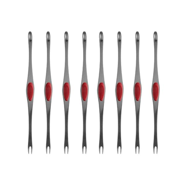 Maine Man's Seafood Picks for loosening and retrieving delicate meat from hard-to-reach areas inside the shell Made from extra sturdy 2.0mm thick 18/8 stainless steel with silicone; 2 sets of 4 seafood picks; each pick measures 8-inches long Rounded scoop separates meat away from the shell while the pronged end extracts it; comfort silicone grip remains slip-free, even when hands are wet Ideal for whole lobster, lobster tail, crab, lobster claws, crawfish, or to pick meat for lobster roll or gumbo without leaving a single nibble behind Compact for easy storage; dishwasher safe for easy cleanup
