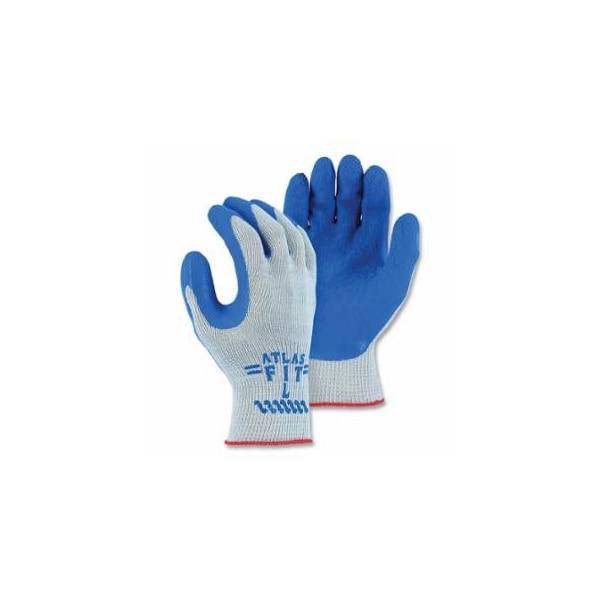 Atlas Palm Dipped Gloves, 9/Medium, Gray with Blue Coating, 12PK