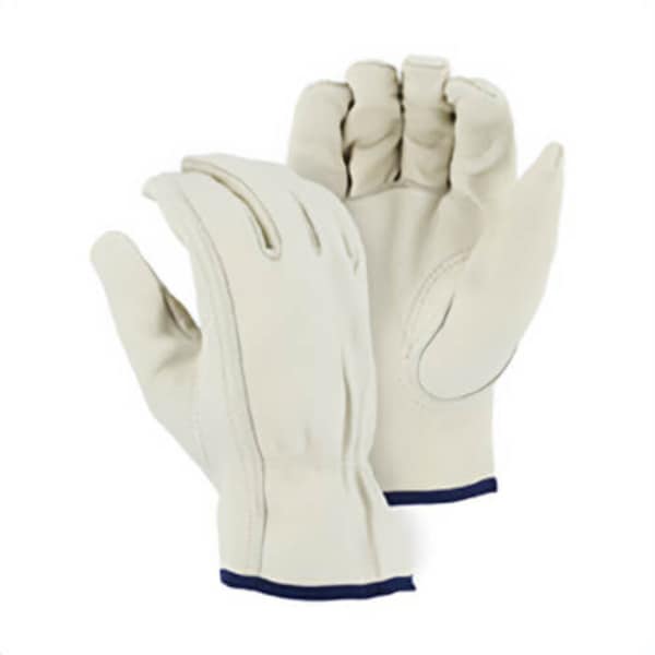 Majestic Glove general purpose gloves series: 2510, drivers glove, 4 extra-large/size 14 size, grain cowhide leather palm, bc grade grain cowhide leather, tan, gunn cut/keystone thumb style, unlined lining, elastic/shirred cuff, slip on closure.