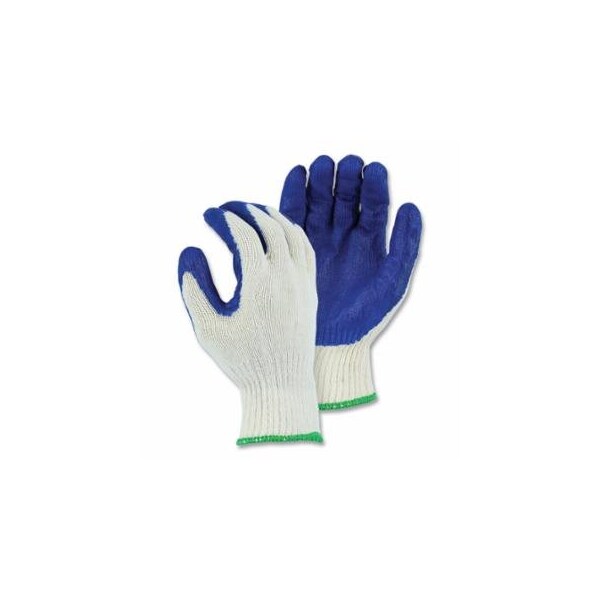 String Knit Gloves with Palm Coating, 10/Large, White with Blue Coating