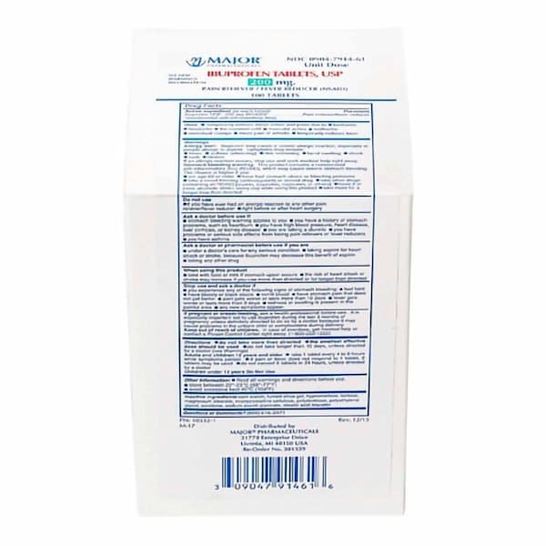 Manage fever, aches and other symptoms of illness with Major brand tablets, made with pain-relieving ibuprofen as the primary ingredient Relieves pain associated with head and toothaches, menstrual cramps and minor injuries such as sprains and strains Over-the-counter tablet can help to relieve cold symptoms such as fever and muscle and body aches Nonsteroidal anti-inflammatory drug NSAID; safe for both adults and children aged 12 and older when managing fever or pain Contains 200 milligrams of the active ingredient ibuprofen to help temporarily relieve pain and inflammation