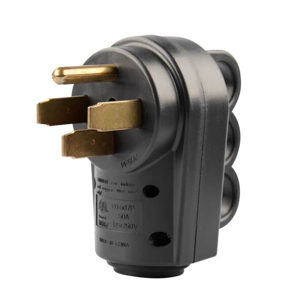 This high-quality 50 Amp RV plug is a perfect replacement for the male end of your 50 Amp RV power cord. Constructed for durability and reliability, this plug features a 125/250 volt rating and a 50 amp capacity, making it suitable for 6/3+8/1 RV cords. With compatibility for wire sizes ranging from 10 to 4 gauge, this plug offers a versatile solution for various RV setups. Upgrading your RV with this easy-to-install replacement plug ensures a safe and efficient power connection for all your camping adventures. ETL certified for safety and quality assurance, this NEMA 14-50P plug is a reliable choice for RV enthusiasts.