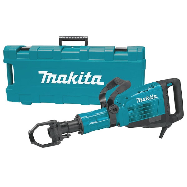Demolition Hammer Kit, Handle Type Chipper, Chuck Style 1 1/8 in Hex, Impact Energy 25.7 ft-lb, Maximum Blows per Minute 1,450 bpm, Tool Weight 38.2 lb, Current 14 A, Number of Speed Settings Continuous, Vibration Level 12 m/sq sec, Sound Level 101 dB, Voltage 120V AC, Power Source Corded, Kit Contents (1) 20 1/2 in Bull Point Chisel, 1 1/8 in Hex, (1) Bare Tool, Minimum Blows per Minute 730 bpm