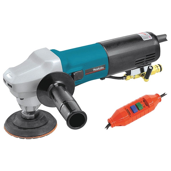 Stone Polisher, Product Type Wet Polisher, Polishing Motion Rotary, Included Pad Sizes 4 in, Maximum Disc Diameter 4 in, Minimum Disc Diameter 4 in, Abrasive Mount Type Hook and Loop, Grip Type Right Angle with Side Handle, Orbit Size Not Rated, Maximum Disc Speed 4,000 RPM, Speed Settings Variable, Number of Pads Included 1, Number of Abrasives Included 0, Switch Type Lock On, Voltage 120 V, Includes 4 in Rubber Pad, Dust Cover, Front Grip, Head Cover, Hex Wrench, Side Handle, Spanner Wrench