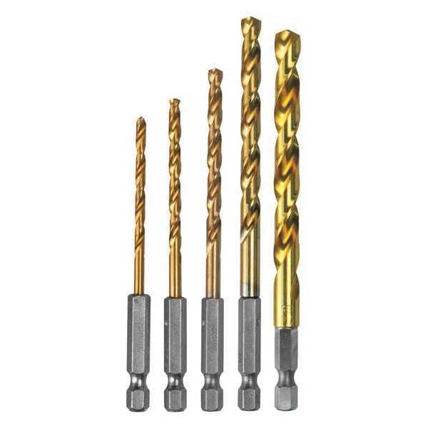 5 Pc. Titanium Coated Drill Bit Set, 1/4" Hex Shank
