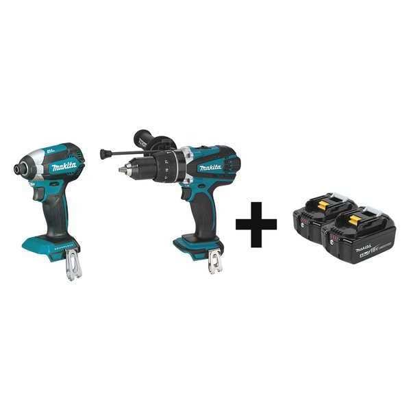 Cordless Combination Kit, Cordless Tools Included Hammer Drill, Impact Driver, Voltage 18 V DC, Power Source Cordless, Number of Tools 2, Battery Capacity (2) 4.0 Ah, Includes (1) Side Handle, (1) Depth Gauge, (1) Belt Clip, Tool Brand Makita, Series 18V LXT, Battery Included (2) 33RT43, Mfr. No. BL1840B, Number of Batteries Included 2, Battery Model No. (2) Mfr. No. BL1840B, Battery Series LXT(R), Charger Included No, Cordless Tool Kit Contents (2) Bare Tools, (2) Batteries