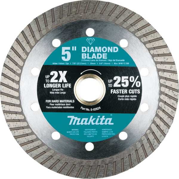Diamond Saw Blade, Blade Dia. 5 in, Arbor Size 5/8 in, 20 mm, 7/8 in, Arbor Shape Round, Max. Blade Speed 12,200 RPM, For Use With Saw Type Angle Grinder, Cut-Off Saw, Cutting Type Wet/Dry, Rim Type Turbo, Primary Material Application Concrete; Granite; Fire Brick; Stone, Materials Cut Concrete, For Use On Concrete Type Fire Brick, Granite, Stone, Grade Premium, Blade Material Diamond