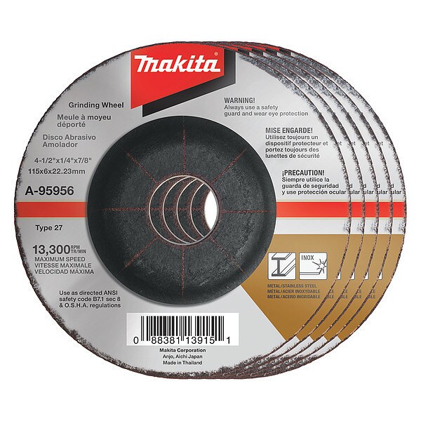 Grinding Wheel,36 Grit,4.5 In. x 1/4 In. x 7/8 In.,PK5, Connector Size 0, Package Quantity 5