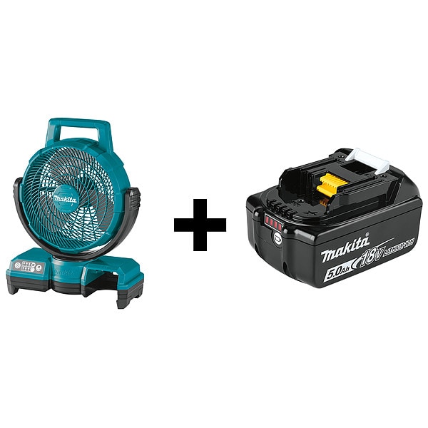 Jobsite Fan Kit, Battery Platform LXT(R), Blade Diameter 9 1/4 in, Number of Speeds 3, Air Flow 290 cfm, Mount Type Freestanding, Oscillation Oscillating, Cordless Tool Kit Contents Bare Tool, Battery, Battery Capacity 5.0 Ah, Battery Included / Bare Tool Battery Included, Voltage 18V DC, Power Source Corded, Cordless, Battery Model Number 38XU33 (Mfr No. BL1850B), Features Designed for Reduced Wind Noise Level for Quiet Operation, Handle for Easy Mobility, Included Charger No