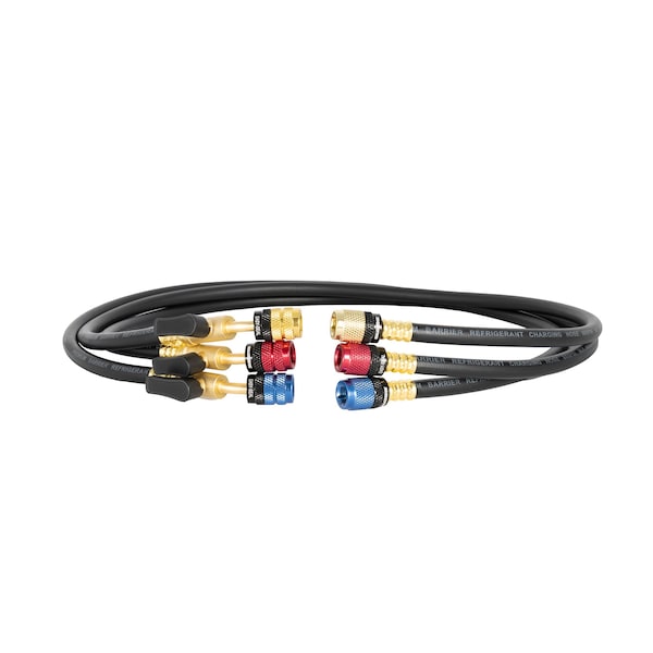 The MalcoEdge ESBV3614516 Easy Seal 36-Inch Hose Set with Ball Valve is specifically designed for HVAC technicians servicing mini-split and mixed-port systems. Outfitted with 1/4 SAE x 5/16 SAE patented 360 degree swivel female fittings and an integrated ball valve, this compact hose allows for controlled refrigerant flow and leak-free servicing. Its short length makes it ideal for tight spaces, while the durable construction handles high-pressure applications with confidence.