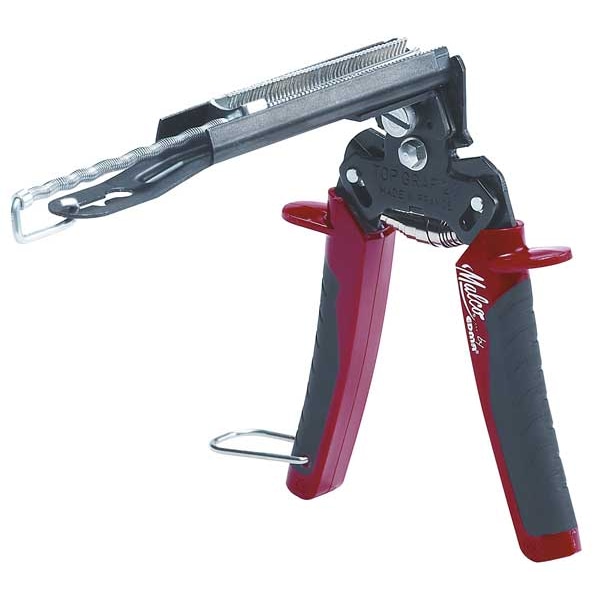The Malco Hog Ring Pliers, Self Feed is a must-have tool for any professional. Its built-in wire cutters and removable magazine hold 50 hog ring staples. With its self feed magazine, you can keep the pliers working without having to reposition them. The handle has spring actuated w/non-slip rubber inserts so it is comfortable to use. This locking plier features a galvanized steel body with a 7 ga, 9 ga and 14 ga capacity. The Malco Hog Ring Pliers are the right tools for anyone looking to secure metal sheets or pipes together quickly and easily.